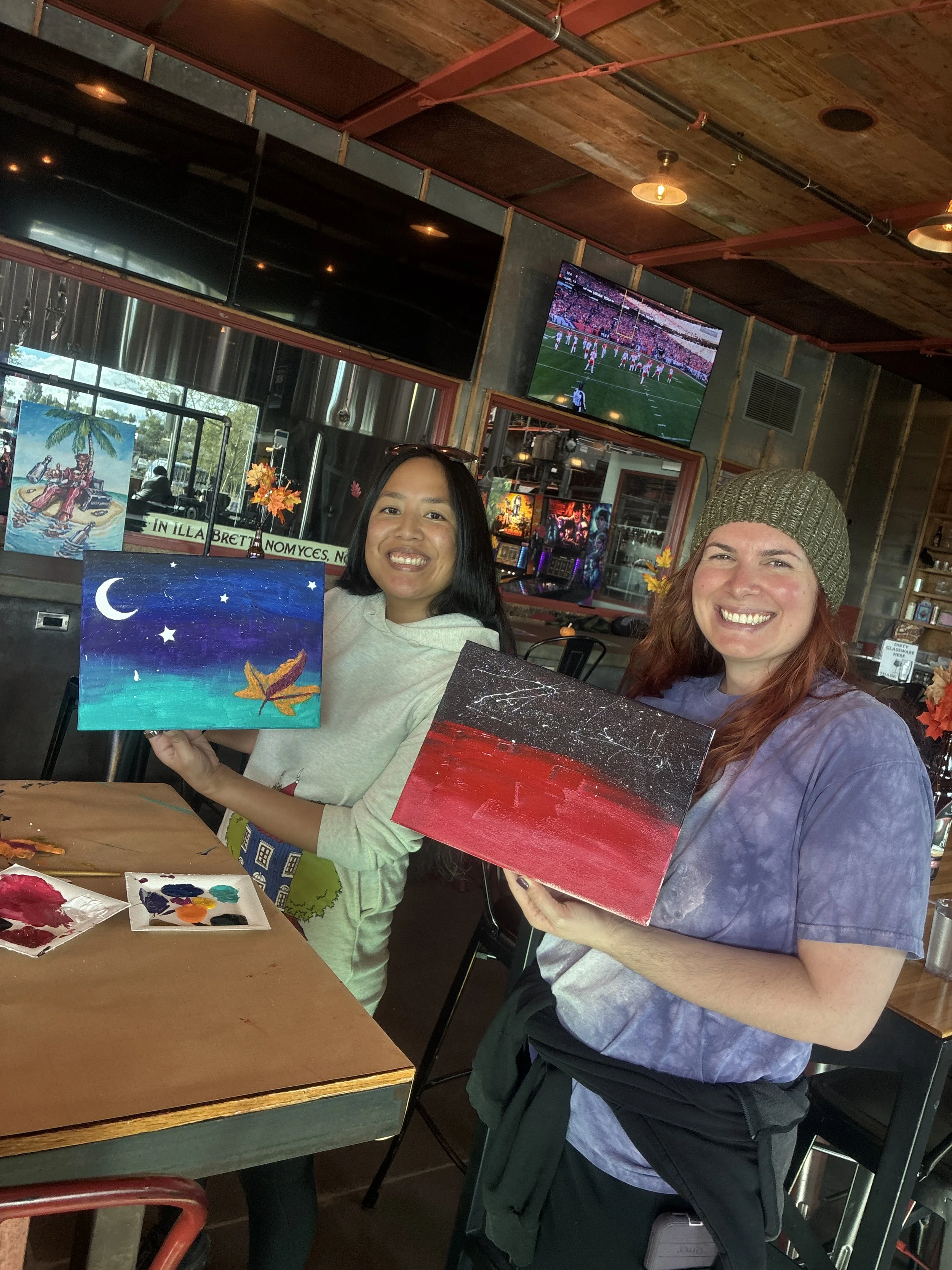 Paints & Pints is an inclusive, creative, fun event where people will come together to enjoy art, music, food/drink, and making new friends. There will be a guided paint sessions (1-3pm) hosted by Evergreen, an enthusiastic artist who has a passion for teaching and helping people find their inner artist.